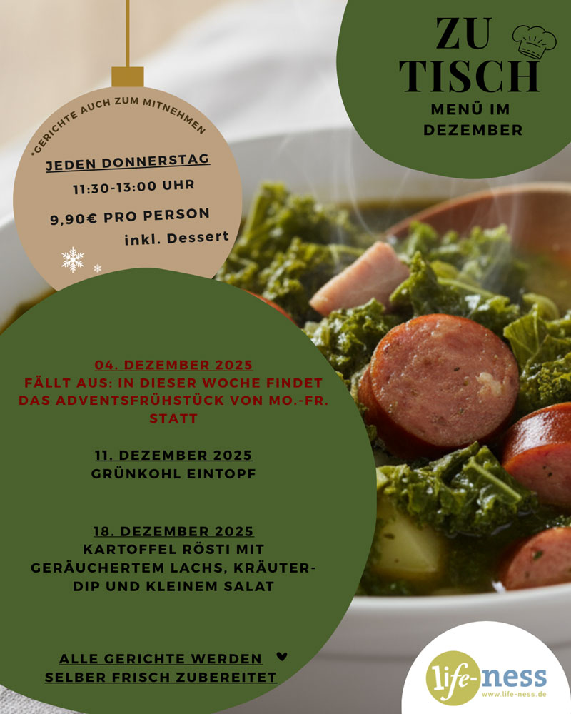 Hier findest du alle aktuellen Termine, Aktionen und Veranstaltungen – und natürlich auch die neuesten Gerichte aus unserer „Zu Tisch“-Küche. Schau regelmäßig vorbei und bleib auf dem Laufenden!