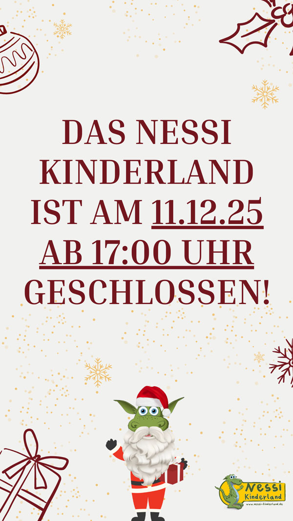 🎄 Wichtige Info: Das Nessi Kinderland ist  am 11.12.2025 ab 17:00 Uhr geschlossen🎄