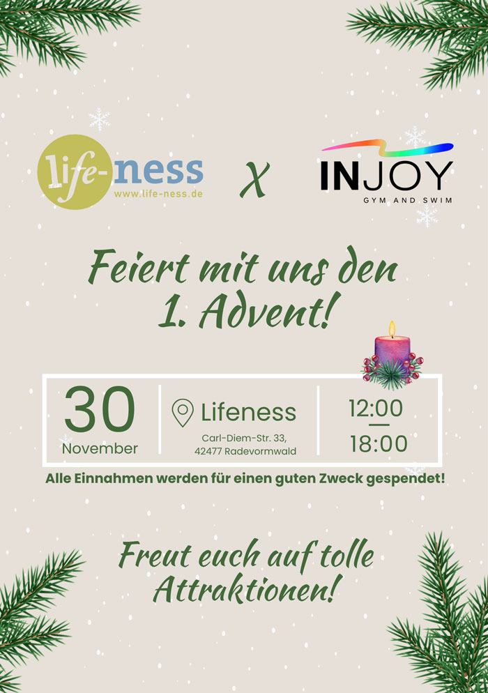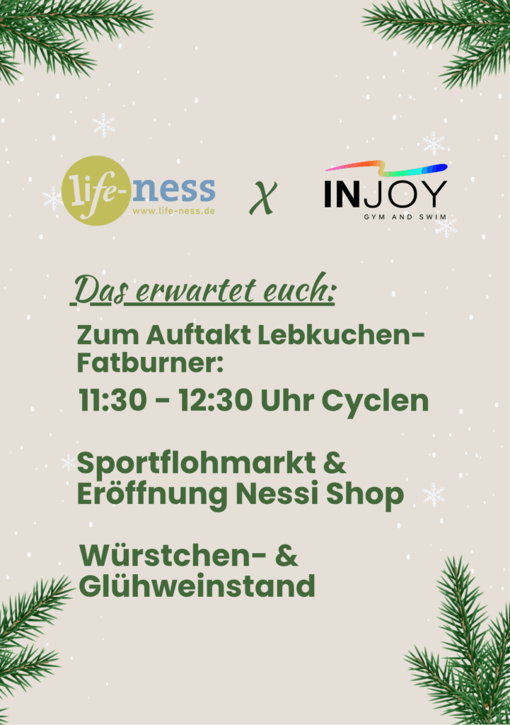 Am 30. November feiern wir gemeinsam mit dem INJOY Gym & Swim den 1. Advent – und ihr seid herzlich eingeladen! 💚