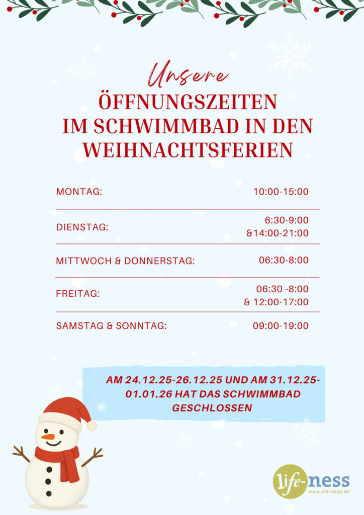 Bitte beachte, dass das Schwimmbad an folgenden Tagen geschlossen bleibt: