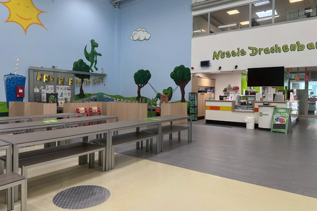 Das Nessi Kinderland ist nicht nur ein Ort zum Spielen und Toben, sondern ein wahres Paradies, das Kindern unvergessliche Momente voller Freude und Begeisterung schenkt. Von Trampolinen über Hüpfburgen bis hin zu Hindernisparcours und elektrischen Mini-Go-Karts (für nur 1,00 € pro Fahrt zusätzlich!) – hier gibt es so viel zu entdecken und zu erleben! Und das ist noch nicht alles! Ein riesiges Klettergerüst mit Rutschen, Air Hockey und vielem mehr wartet darauf, von kleinen Abenteurern erobert zu werden. Lasst uns gemeinsam ein Abenteuer erleben, das die Herzen der Kinder höherschlagen lässt und sie mit strahlenden Augen nach Hause gehen lässt!